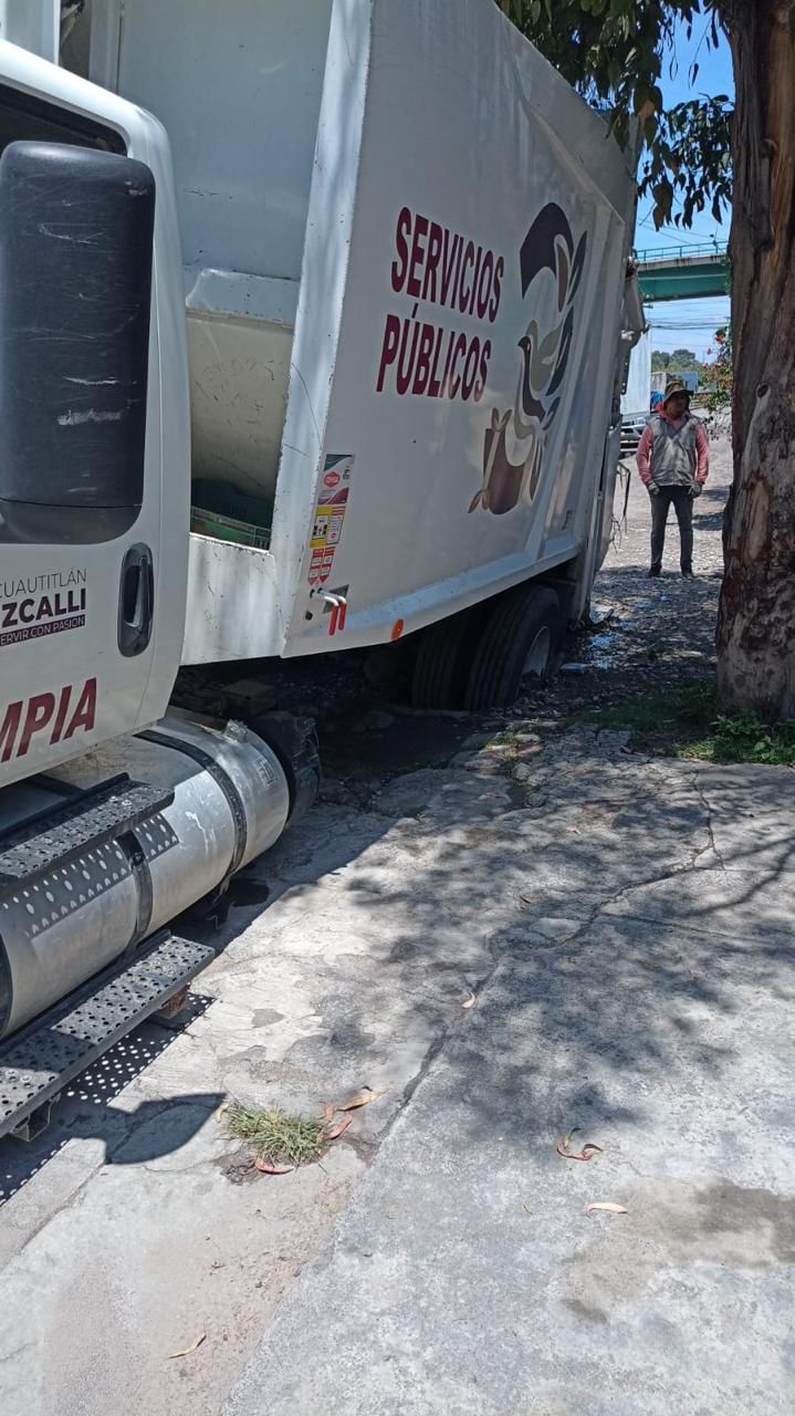 El Gobierno Municipal de Cuautitlán Izcalli informa que una llanta de un camión compactador, con número económico SP-315 de la Dirección de Servicios Públicos, se hundió en el pavimento en la colonia Loma Bonita. Ante la situación, se llevó a cabo el retiro de la unidad con apoyo de una grúa y una plataforma, logrando remolcarla sin incidentes.