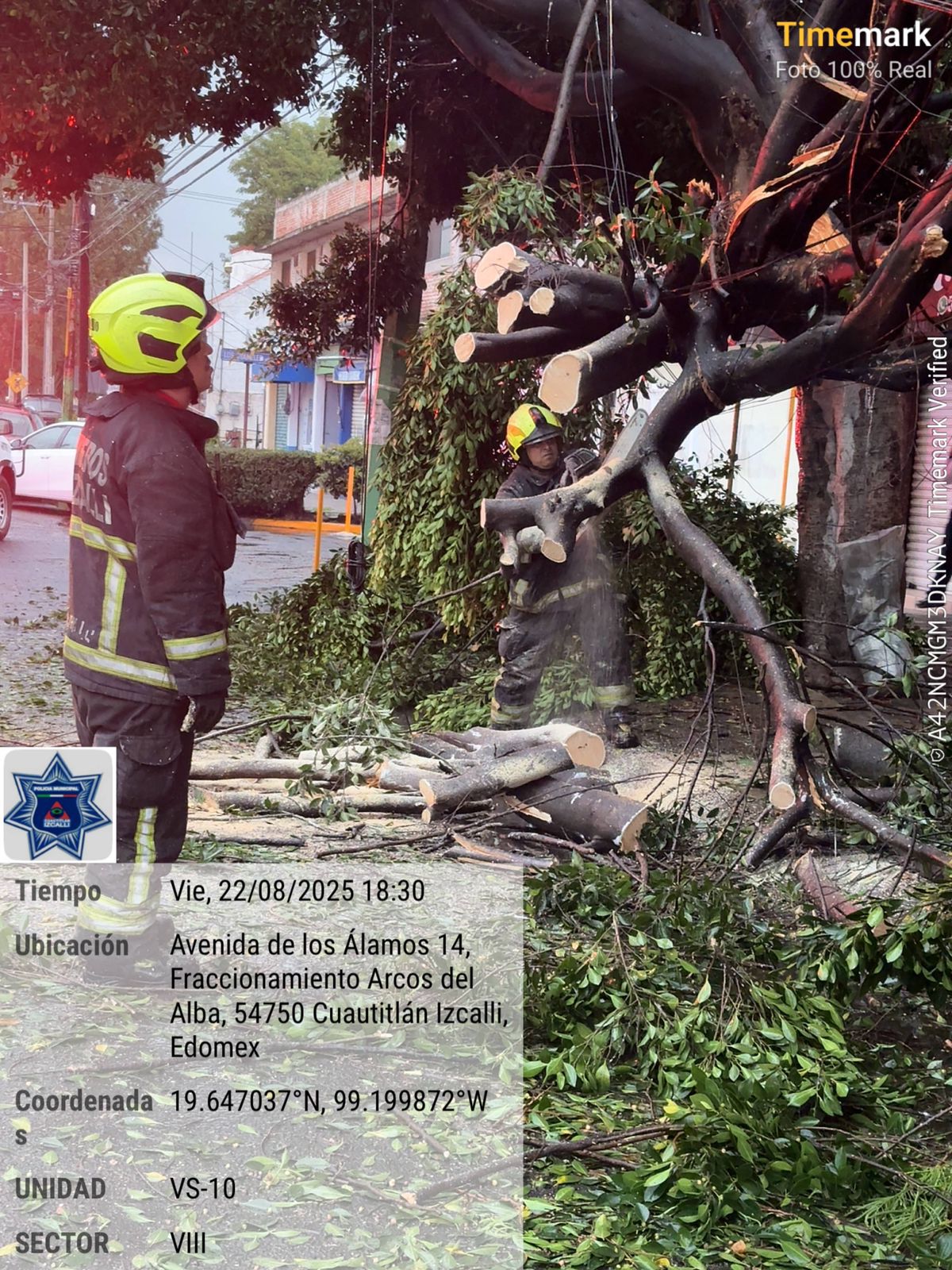 Se realizaron trabajos de desfogue en la zona de Prolongación Cuautitlán, así como en la vialidad Jorge Jiménez Cantú, en la colonia Centro Urbano, vialidades que ya se encuentran liberadas en su totalidad.