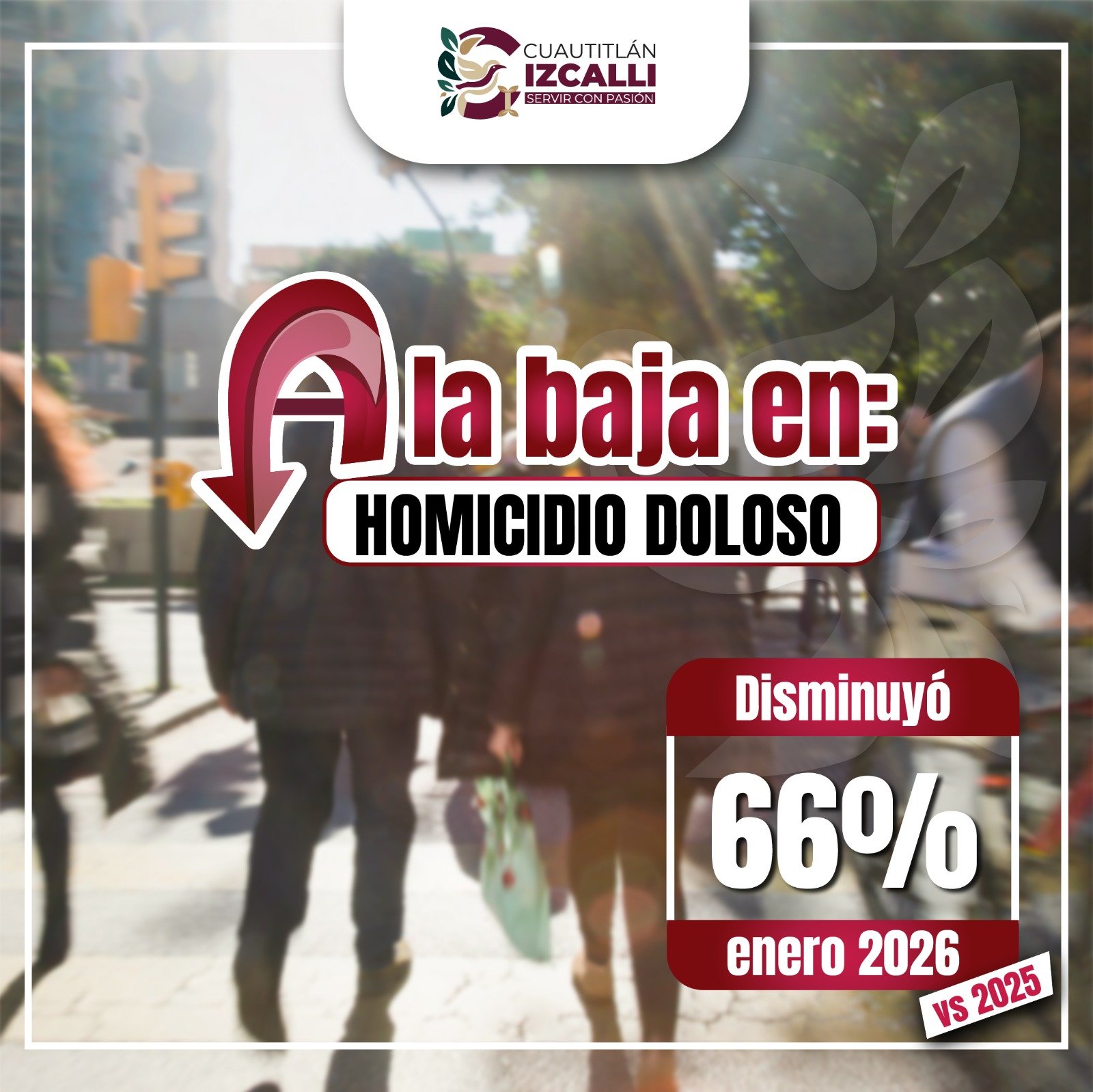 El Gobierno Municipal de Cuautitlán Izcalli, encabezado por el Presidente Municipal Daniel Serrano, logró una disminución en el delito de homicidio doloso, como resultado de la estrategia de seguridad coordinada entre los tres órdenes de Gobierno, que se implementa desde el año pasado.