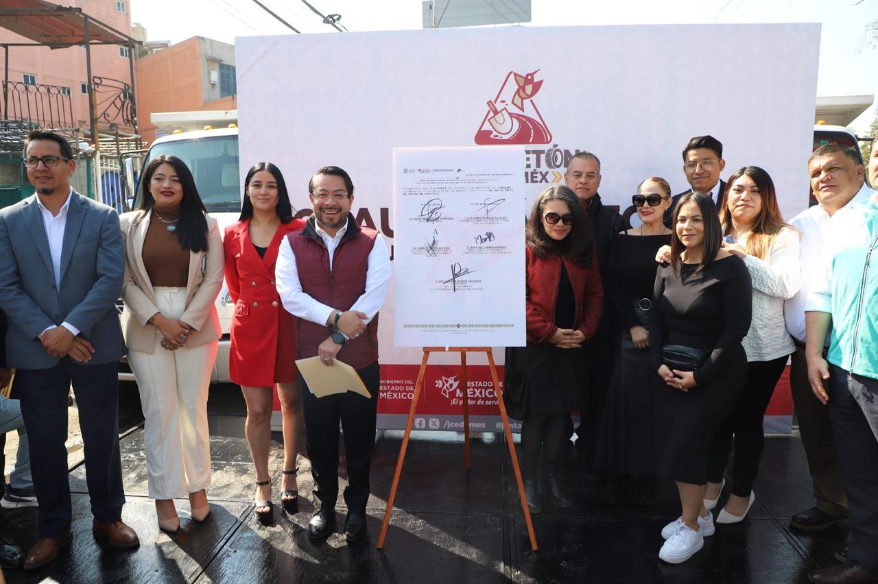 Al firmar el convenio de colaboración para que este municipio sea beneficiado por el programa estatal impulsado por la Gobernadora Delfina Gómez Álvarez, el Alcalde detalló que para lograr mejores vialidades, la Junta de Caminos del Estado de México dotará de la mezcla asfáltica y el gobierno municipal pondrá la mano de obra y la maquinaria.