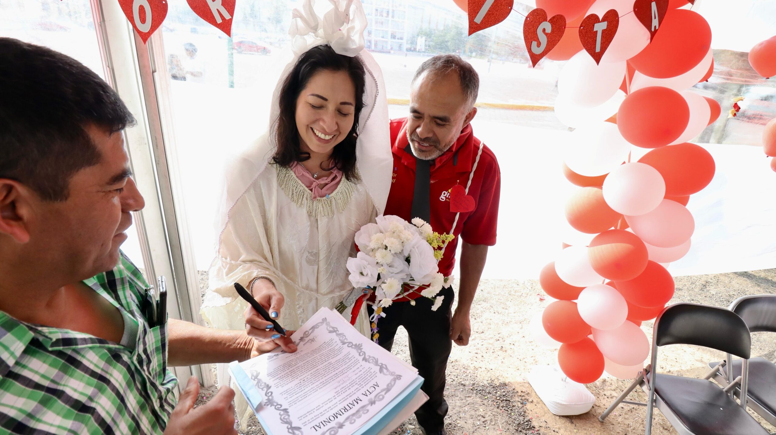 En el marco del Día de San Valentín, desde las 14:00 horas se instaló un stand del Registro Civil tipo kermés donde las parejas que así lo quisieron “formalizaron” su relación, fortaleciendo con ello el lazo de amor y de amistad que los une, recibiendo como obsequio de “bodas” una planta cactácea o un libro.