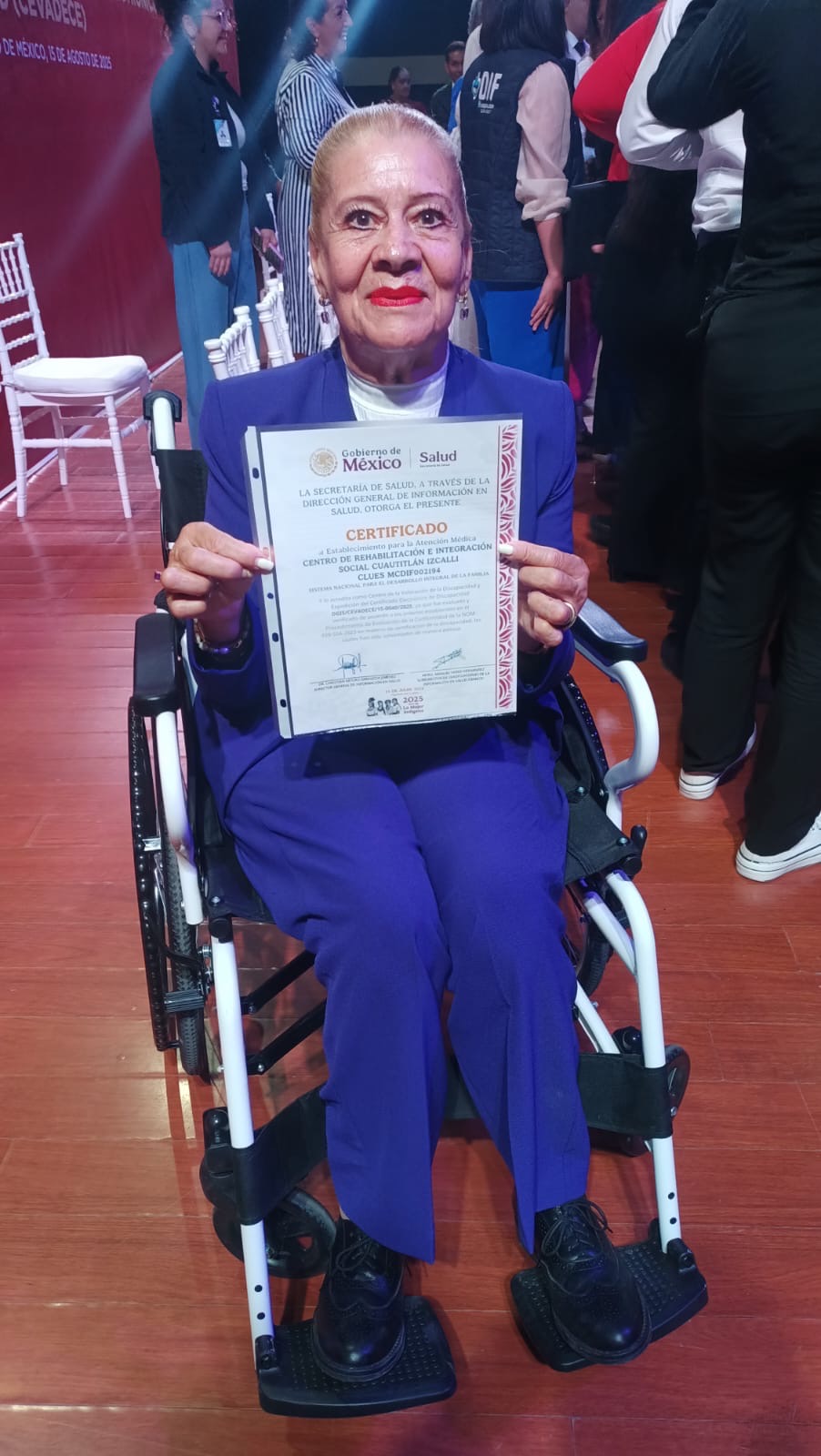 Durante la entrega, la Secretaria de Salud afirmó que este reconocimiento está sustentado en la Norma Oficial Mexicana (NOM) en materia de certificación de la discapacidad, la cual tiene por objetivo cerrar una brecha histórica para facilitar que las personas con discapacidad puedan obtener de manera gratuita, cercana y sencilla el documento oficial que acredita su condición.